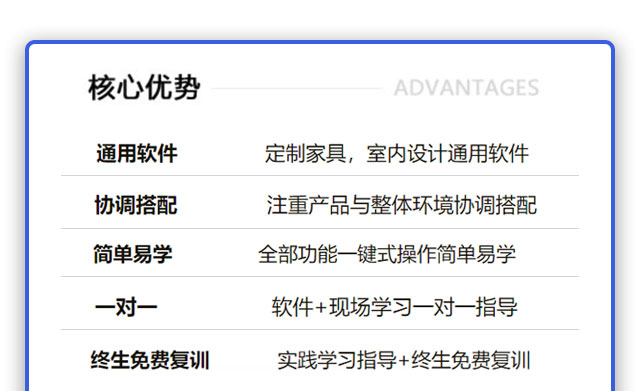 橱柜系统产品知识学习,厨房空间整体布局、测量方法,以及异型或有障碍厨房空间测量、各品牌工艺标准、结构学习、常用五金电器设计方法、以及设计过程中减尺、收口、转角等常见问题处理、水电布置、灯光运用、台面下单、客户沟通成交、方案美化、单值提升及对接工厂下单、特殊门板拆单、错误规避等,全方位橱柜设计系统课程。